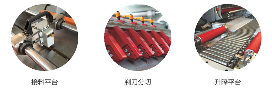 · 帶有裁切刀、氣動(dòng)壓料的接料平臺(tái)